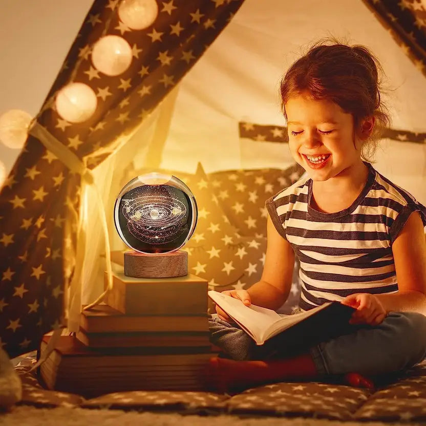Easymart Galaxy Crystal Ball Night Light,2.4 inch Glass with Woodern Base Table Lamp (7.5 cm, Multicolor)