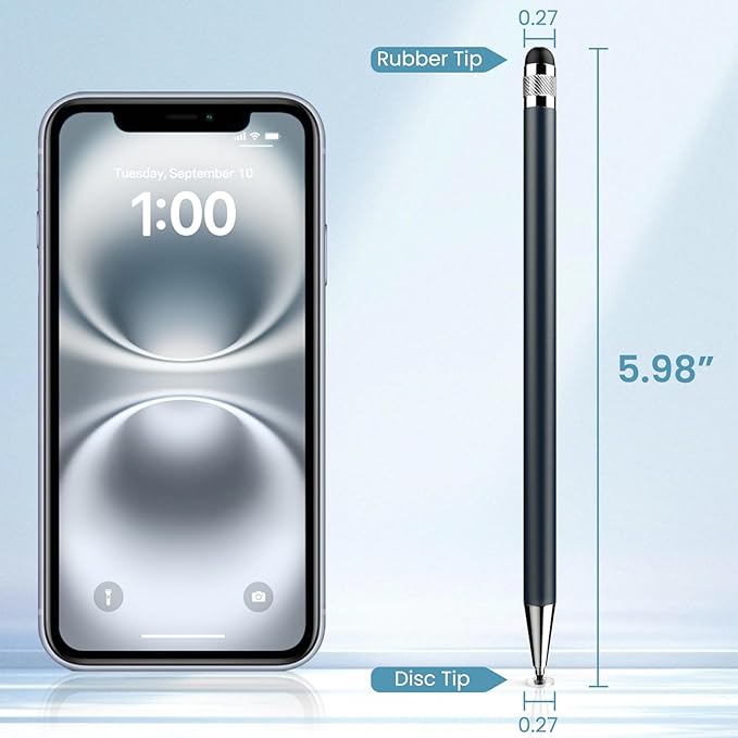 - 【Disc and Rubber dual Tips design】: The two different- tips(0.27'' & 0.27'') are smooth and responsive, made from high-quality material with excellent wear and aging resistance. The soft rubber tips won't scratch screens or leave as many fingerprints as fingers. Ideal for those with long nails or larger fingers, perfect for browsing screens,, and playing games.