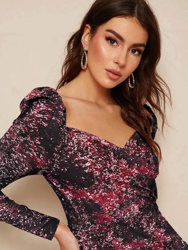 Elevate your style with our stunning Black and Maroon Printed Bodycon Dress featuring a charming Sweetheart Neck and on-trend Puff Sleeves. Crafted from luxurious Cotton Lycra material, this dress combines comfort with sophistication. The flattering sweetheart neckline accentuates the bust, while the bodycon silhouette hugs your curves for a captivating look. The eye-catching black and maroon print adds a touch of elegance and flair to your ensemble, perfect for both daytime adventures and evening soirees. Whether you're heading to a brunch date or a cocktail party, this dress ensures you make a statement with every step. Embrace the perfect blend of style and comfort with this must-have addition to your wardrobe.