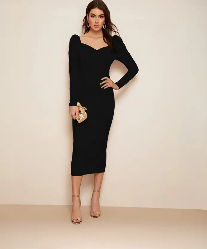 Women Bodycon Black, Maroon, White Midi/Calf Length Dress